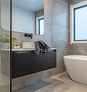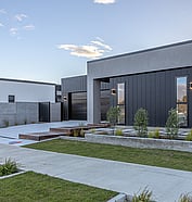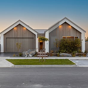 This bold and modern four-bedroom home makes an immediate impression with its Stria cladding and sleek concrete detailing.