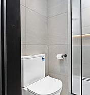 Inside, high ceilings, large windows, and ranch sliders flood the home with natural light, creating a bright, airy atmosphere. The minimalist design is elevated by oak flooring, a simple yet functional kitchen with open hanging shelves, and plenty of built-in storage throughout. Clean, warm, and cleverly laid out—this home proves that small sections can deliver big impact.