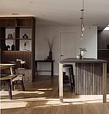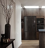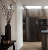 This features four bedrooms and two bathrooms, wrapped in James Hardie Stria cladding with Larch accents on the garage and entrance for a striking contrast. Inside, skylights span the length of the living space, flooding the home with natural light—allowing for rich, moody tones and warm wood-on-wood detailing to shine. The kitchen is a standout, with sleek finishes and textural depth that make it a must-save for design inspiration. A project we loved bringing to life!