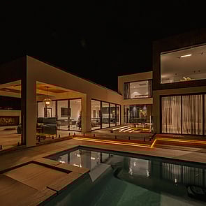 A bold, modern home with striking contrasts, natural light, and warm, textural design—built for style and function.
