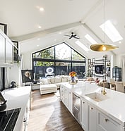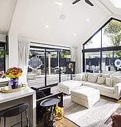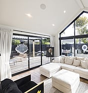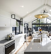 Step inside to a light-filled interior designed for effortless living and entertaining. The open-plan kitchen and dining area is framed by skylights and floor-to-ceiling windows, flooding the space with natural light and connecting seamlessly to the expansive outdoor deck. With strong indoor-outdoor flow and a layout built for gatherings, this home is the perfect blend of form and function.