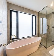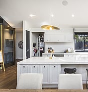 With black board and batten cladding, copper detailing, and feature lighting, the exterior of this new build sets a bold tone that’s both contemporary and timeless.
